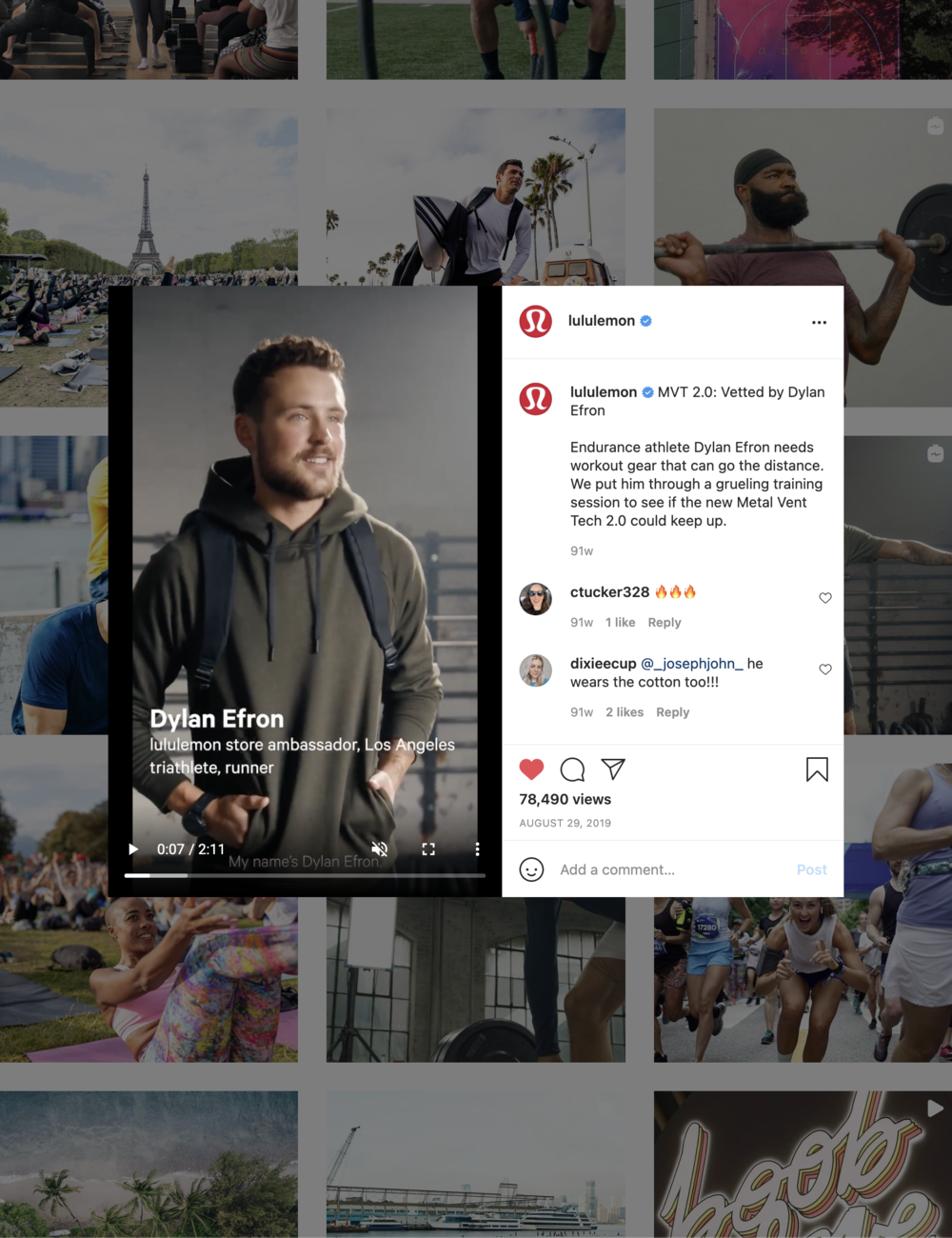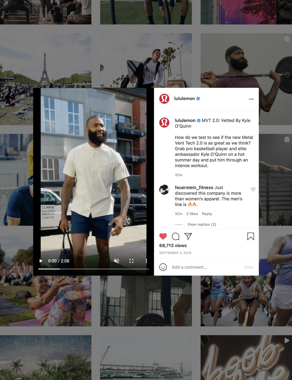 Adverts for a Lululemon social campaign, featuring Dylan Efron (Filmmaker and Fitness Ambassador) and Kyle O’Quinn (Professional Basketball Player and Fitness Ambassador) .